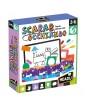 1 lavagnetta double-face; 5 puzzle con i passaggi dei disegni suggeriti; 10 stencil; Tante forme geometriche; 1 righello; 6 pennarelli colorati scrivi e cancella